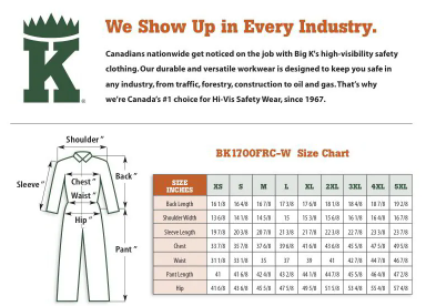 Big K Women’s hi-vis coveralls, crafted from durable NOMEX® fire-resistant fabric for trusted protection across North American worksites. Designed for performance and safety, they feature a button-up front, 2″ reflective tape on the front and back, six functional chest, pant, and cargo pockets, plus two rear pockets for added utility.
