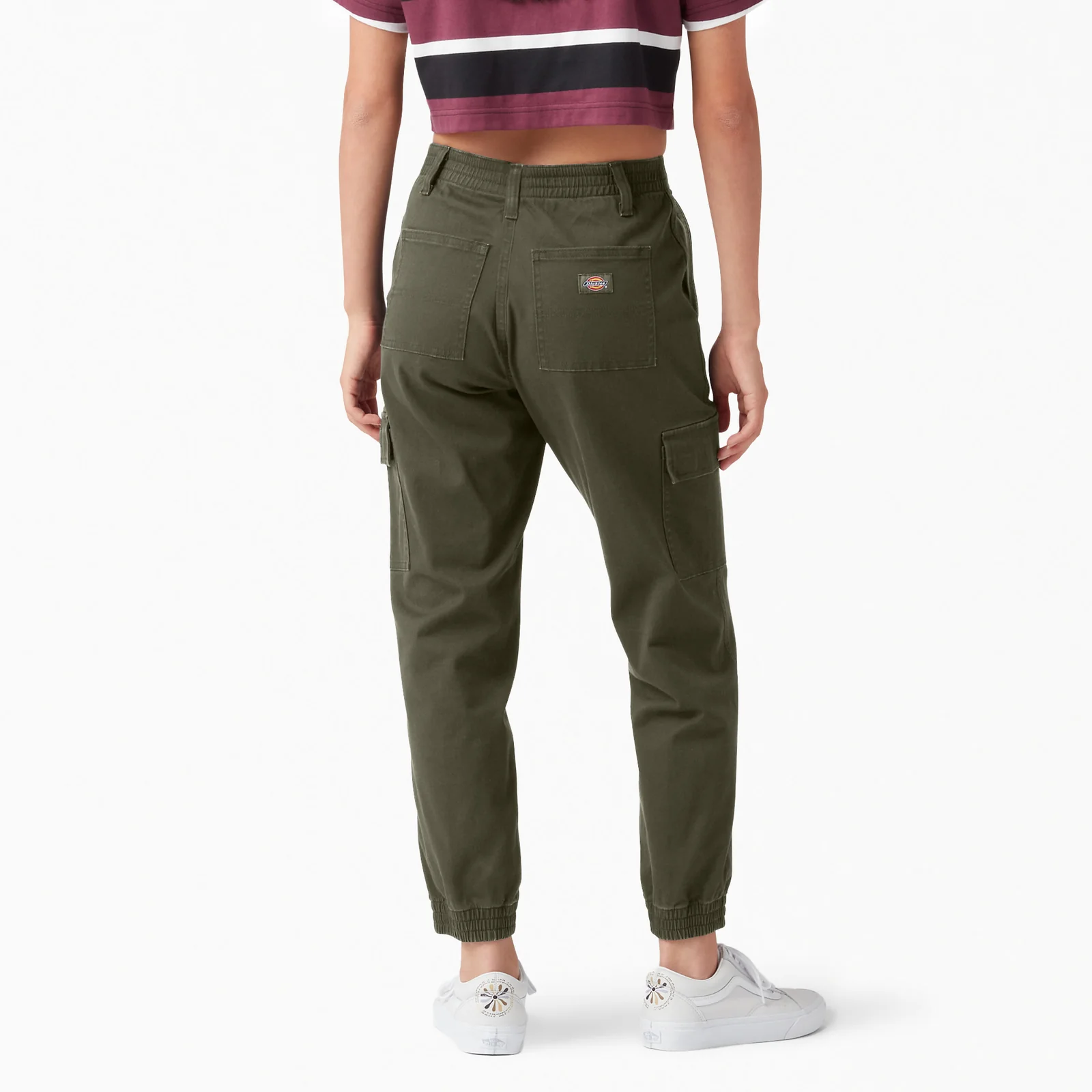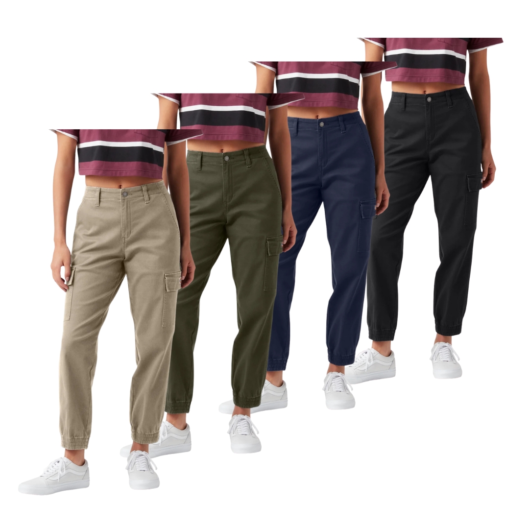 The Dickies Women’s High Rise Fit Cargo Jogger Pants have a proper jogger fit, tapering at the ankle, along with plenty of practical pocketing. Elastic along the back waist provides a comfortable custom fit for easy all-day wearability and straightforward styling that works all year round. This simple style has a tack button closure and dual front slash pockets. The high-rise, flat-front cargo pants also feature rear patch pockets and functional dual-side cargo pockets. These pants are good for both the workplace and the weekend.
