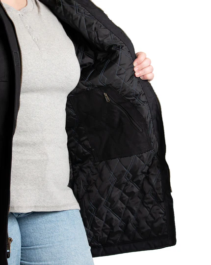 - Shell: 9 oz. 1,000 denier nylon oxford; Lining: Heavyweight insulation quilted to polyester taffeta