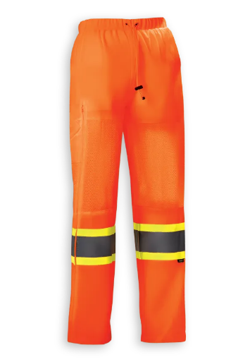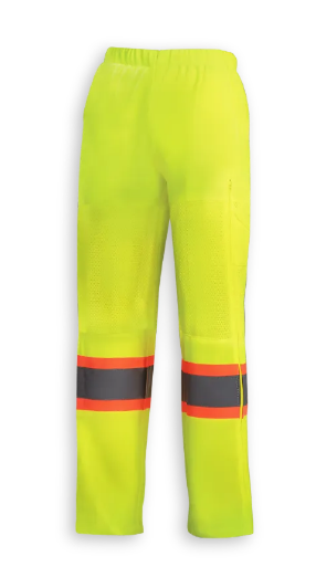Big K’s new women’s fit hi-vis traffic pants deliver lightweight comfort, breathability, and protection for warm weather work. Made from 100% polyester with knee vents, 2-way leg zips, back patch pockets, an elastic waistband with cinch, and 4″ reflective tape.
