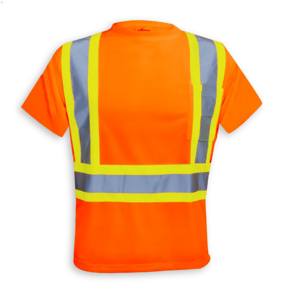 Big K’s new women’s hi-vis safety short sleeve t-shirts available in both orange and lime—are made from 100% moisture-wicking polyester for all-day comfort. T-shirt features a convenient breast pocket, 4” 3M™ reflective tape, and a tailored fit for all-day wear. This high-visibility safety wear offers reliable protection in demanding work environments—because women in the field deserve gear that works as hard as they do.